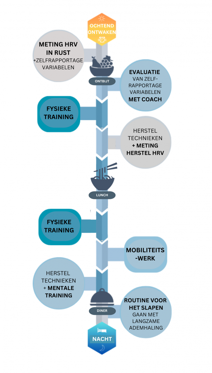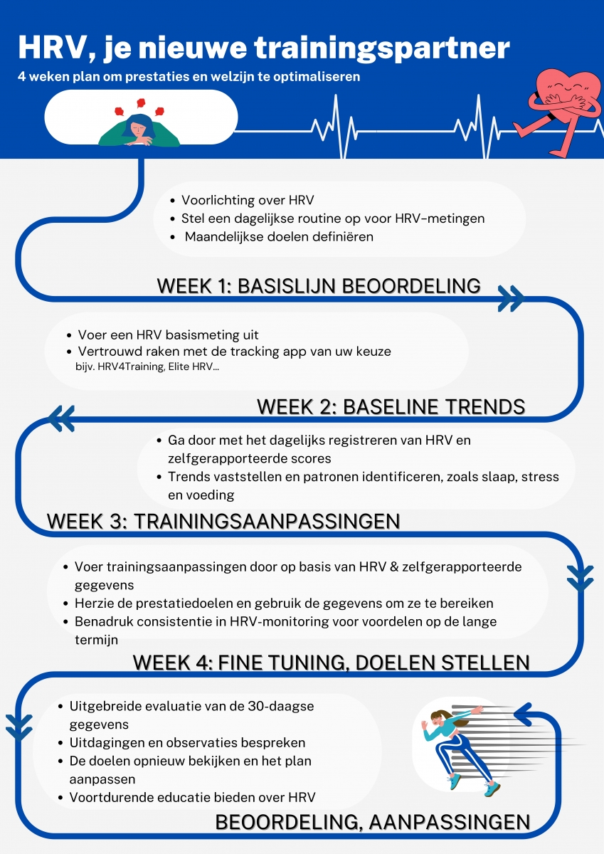 Ja, atleten op alle niveaus, niet alleen degenen die meedoen aan de Olympische Spelen, kunnen veel baat hebben bij het gebruik van HRV- monitoring in hun training. Door regelmatig hun HRV te controleren, kunnen atleten beter begrijpen hoe hun lichaam reageert op training en herstelt en omgaat met verschillende soorten fysieke en mentale stress. Deze kennis maakt een persoonlijker trainings- en herstelplan mogelijk, waardoor sporters hun prestaties kunnen verbeteren op basis van objectieve fysiologische gegevens. Zie Figuur 5 voor tips over hoe je HRV tracking in je dagelijkse routine kunt opnemen.