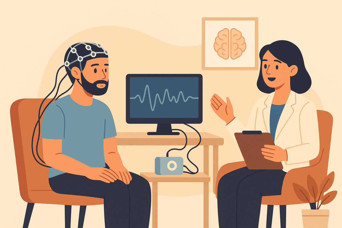 Op basis van deze inzichten ontstond de vraag of we hersenactiviteit ook actief kunnen beïnvloeden als behandelmethode en dat is precies wat neurofeedback probeert te doen. Bij neurofeedback wordt gebruikgemaakt van elektro-encefalografie (EEG), waarmee de hersenactiviteit van een persoon in realtime wordt gemeten. Via een computerscherm of geluidssignalen krijgt de patiënt directe feedback over wat er in het brein gebeurt (Neurofeedback, 2022). De feedback komt in verschillende vormen, bijvoorbeeld een spel waarin de patiënt dan meer of minder punten scoort. Wanneer het brein 'gezonde' patronen laat zien, bijvoorbeeld meer rust in overactieve hersengebieden, krijgt de patiënt positieve feedback en scoort meer punten. Dit helpt patiënten leren om ongewenste hersenactiviteit af te bouwen en gewenste patronen juist te versterken (Askovic et al., 2023). Het is belangrijk dat neurofeedback altijd wordt toegepast onder begeleiding van een gespecialiseerde behandelaar. Die kan de training aanpassen aan de persoonlijke behoeften en activiteitspatronen en de patiënt goed begeleiden tijdens het proces.